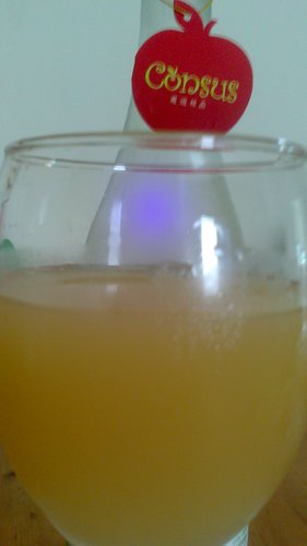 Consus 蘋果汁,果汁顏色略帶混濁,跟以往我們喝到的純蘋果汁不
